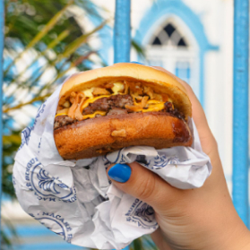 Somos apaixonados por comida de verdade e pela nossa cidade. Cada detalhe da nossa marca homenageia Macaé – da logo com palmeira às cores azul e branco, dos nomes dos burguers às paredes das lojas.